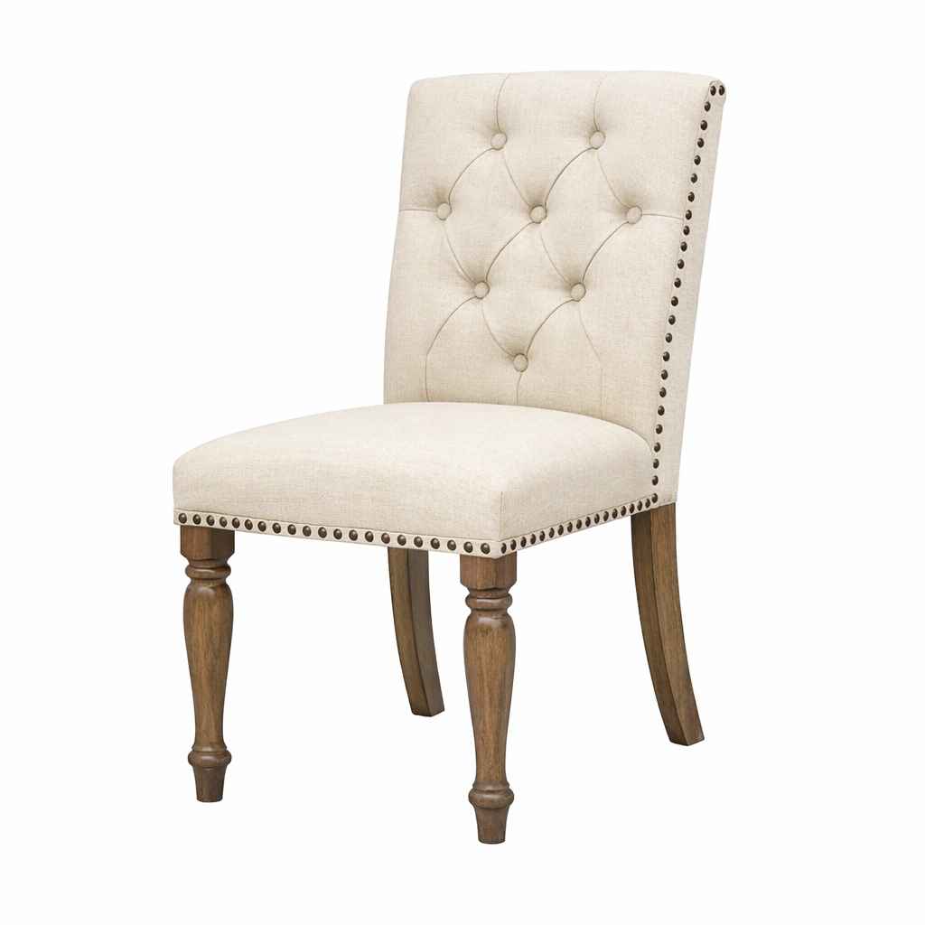 Sillas de comedor de lino y madera beige