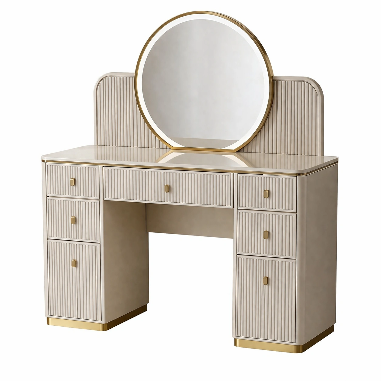 Función: Almacenamiento en múltiples cajones, espejo redondo incorporado.